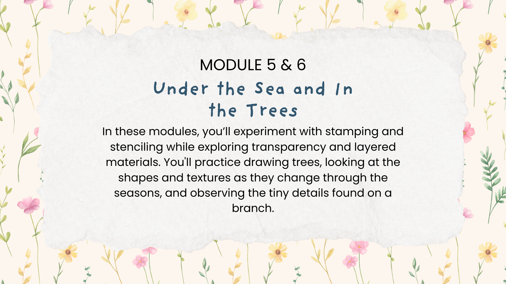 The course has 8 modules for 6+ hours of learning and practicing. It also includes 21+ full-length artwork tutorials! You can pause and replay the videos as much as you want. The course is suitable for everyone, as long as you have a love for nature and all the wonders it holds! Each module starts with a warm-up exercise to get your creativity flowing, and then progresses to more advanced lessons.